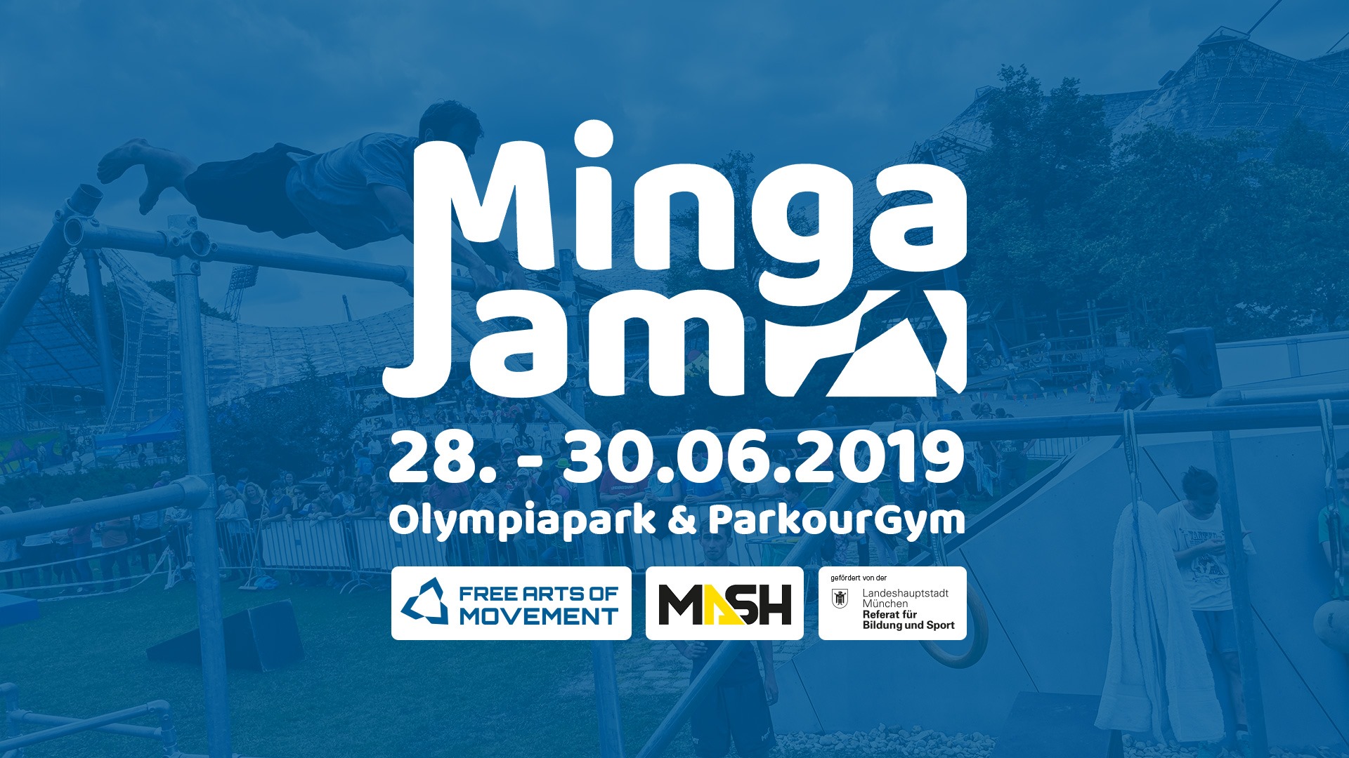 Das M.A.S.H. Festival ist das größte Münchner Sportfest mit ~80.000 Besuchern. Wir bauen mitten auf dem Festival im Olympiapark auf über 1000m² ein riesen Parkour / Trampolin / Airtrack/ Airbag Setup auf und laden Euch ein mit uns 3 Tage lang zu jammen!