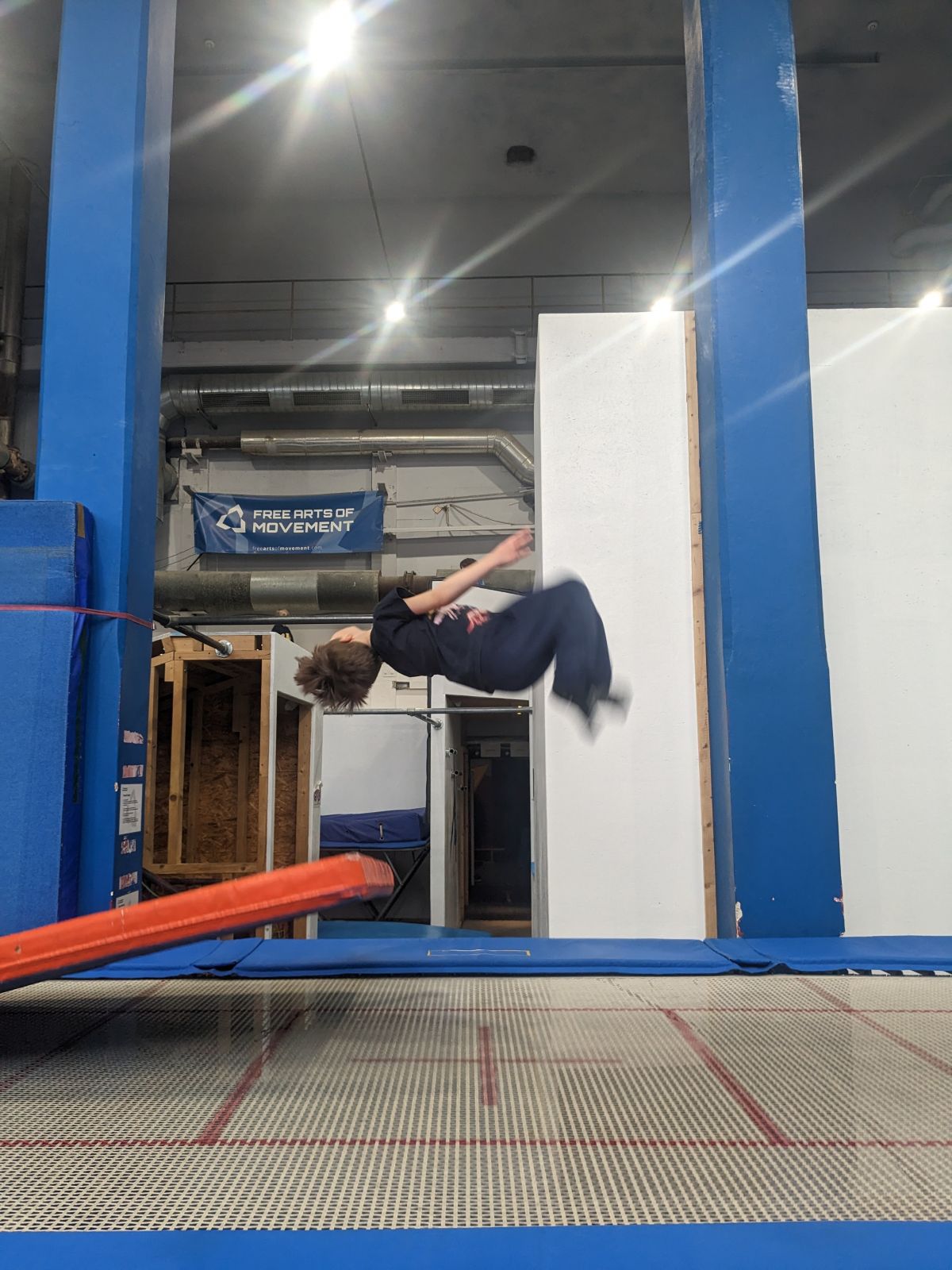 Parkour-Rolle, Handstand- Handstandüberschlag, Räder und Parkourhindernisüberwindungen mit Softobstacles wurden hier geübt. Auch Flips mit und ohne Hindernisse wurden hier gekonnt gemeistert.