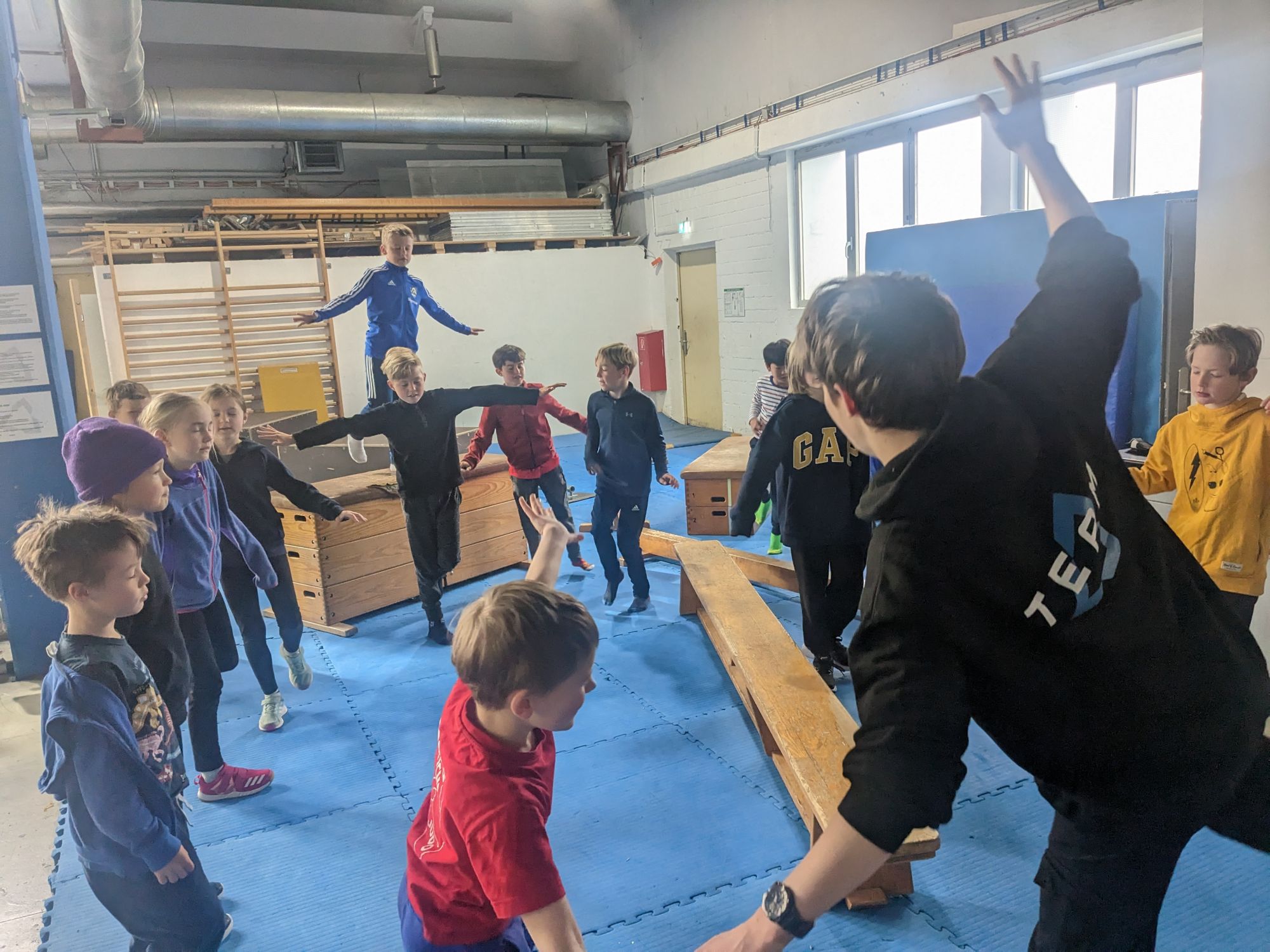 Des Weiteren wurden Techniken vermittelt wie Armsprung und Präzisionssprünge in überschaubarer Höhe.