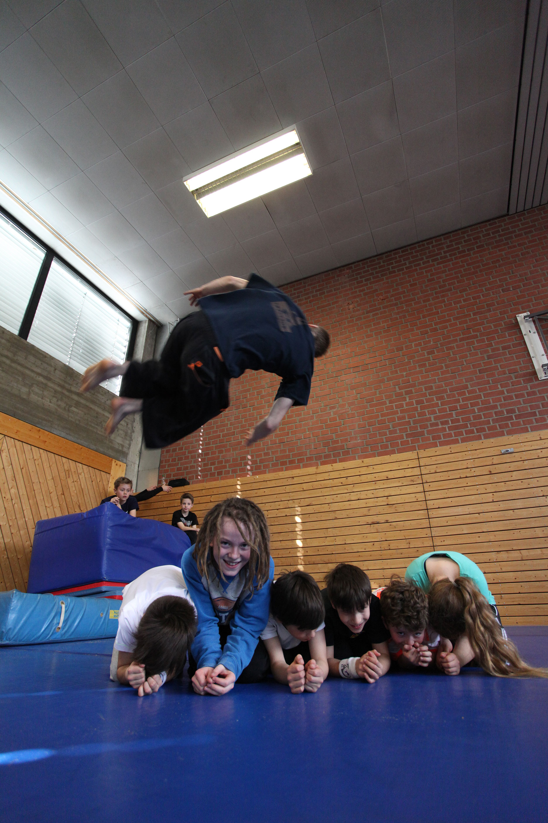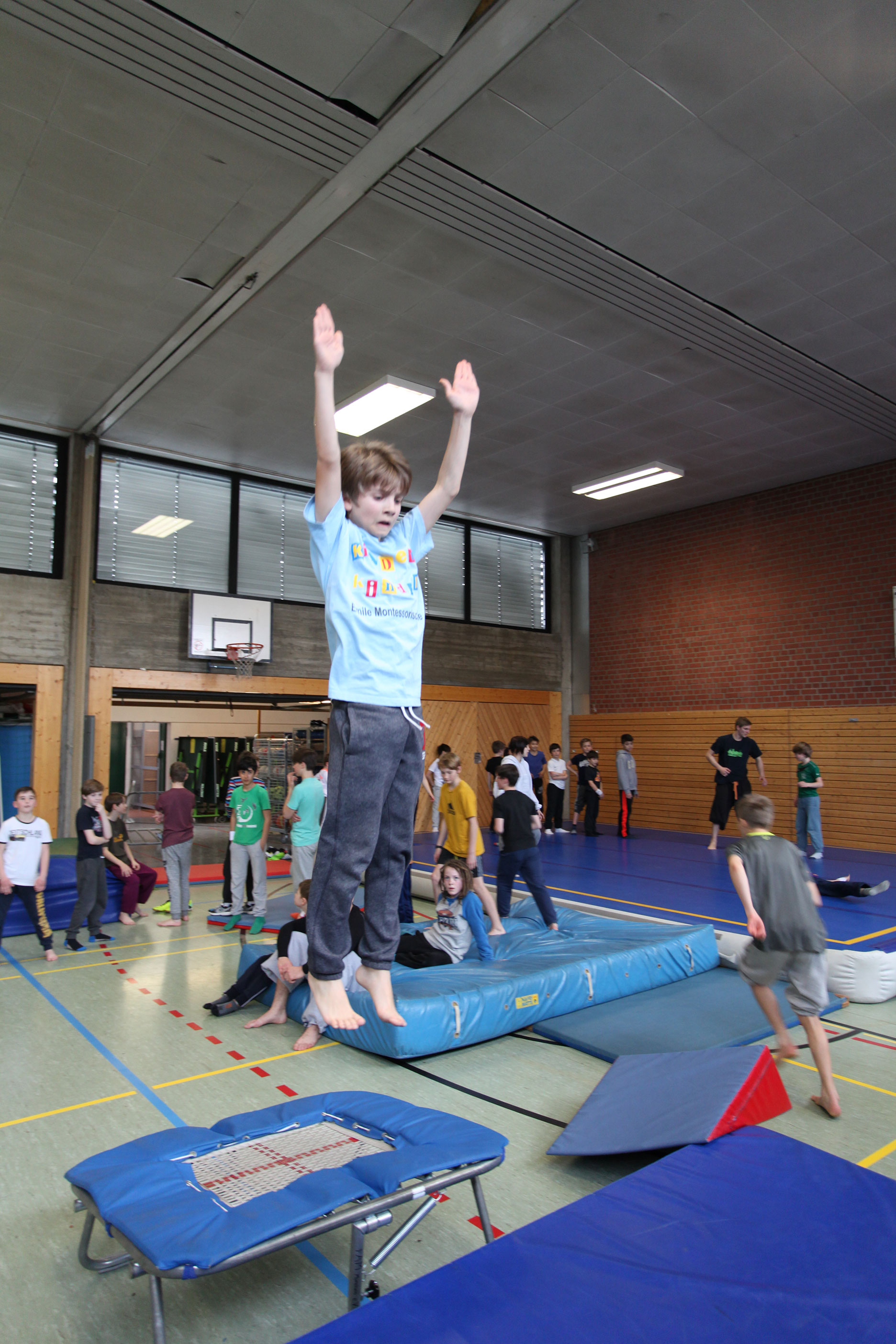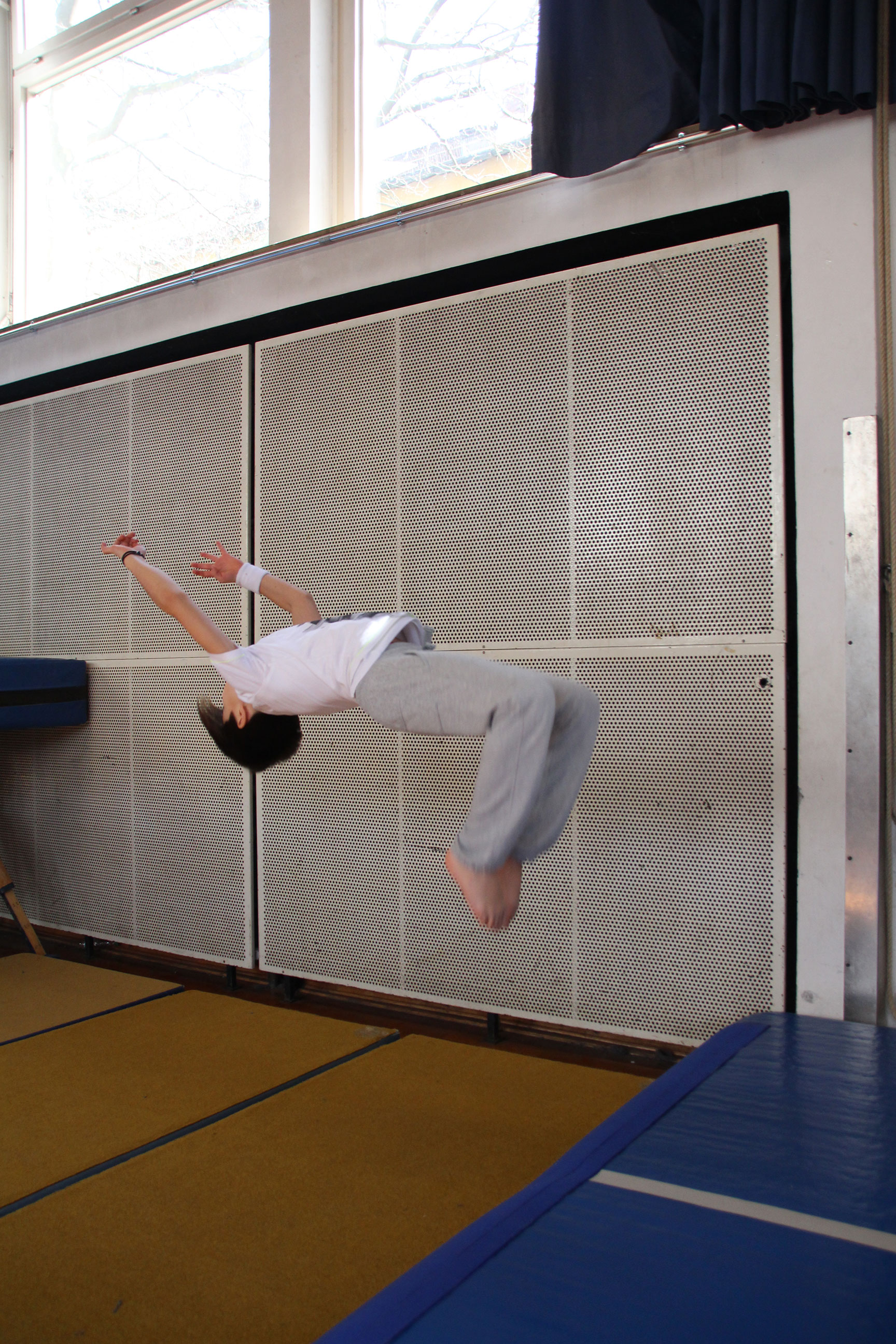 Die Bewegungslandschaft der Halle mit Airtrack, Riesentrampolin und Parkour-Hindernissen lässt keinen Platz zur Langeweile. Dazu gibt es in Milbertshofen ein Stangengerüst, und in der Ludwig-Thoma-Realschule die Boulderwand. Wir machen Ausflüge zu unserem Parkour Park am Candidplatz und erforschen die Stadt auf eine kreative sportliche Weise!