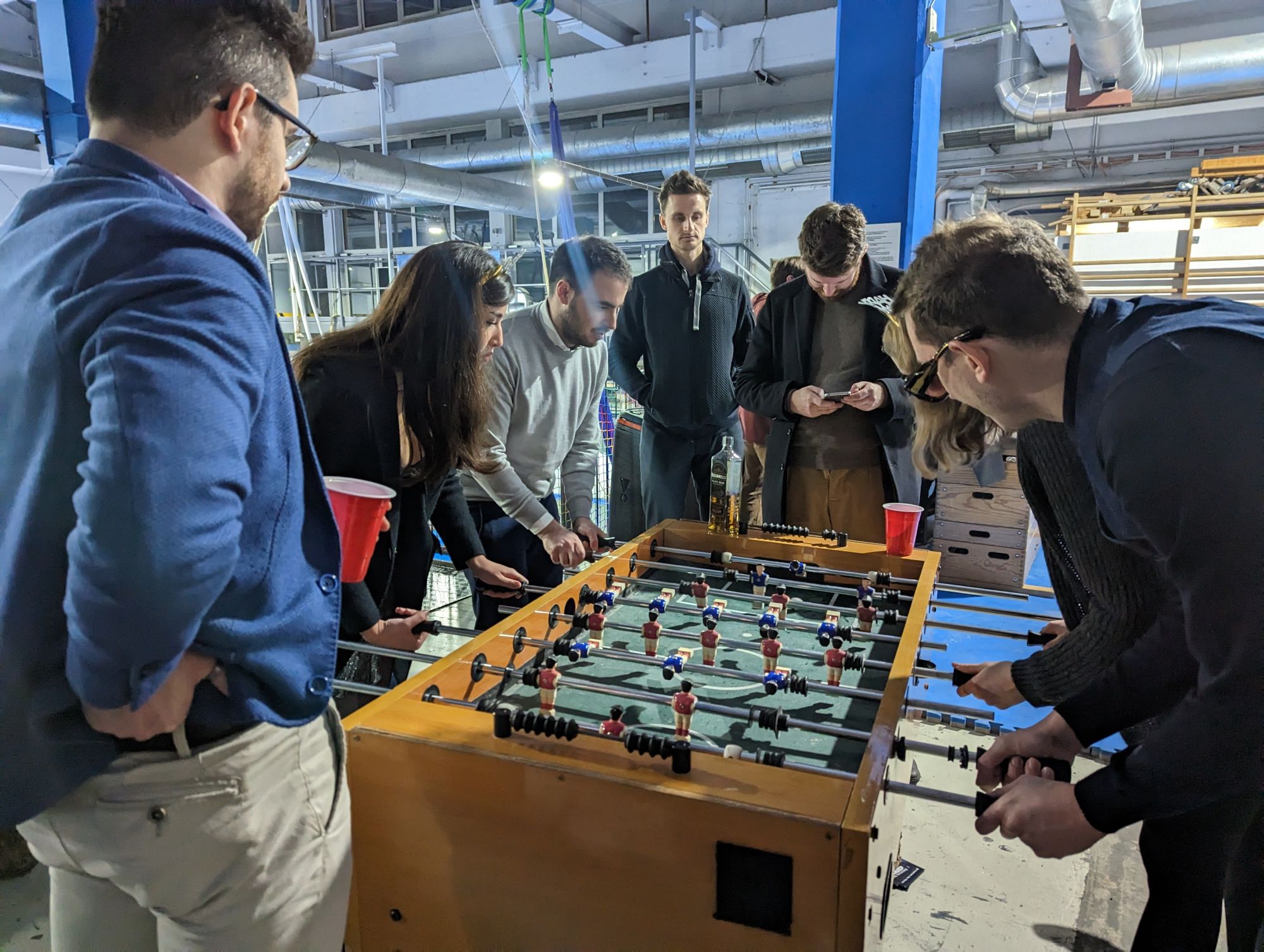 Wer es eher gemütlicher angehen wollte, konnte sich bei Mario Kart mit den anderen messen oder eine Runde Kickerkasten spielen.
